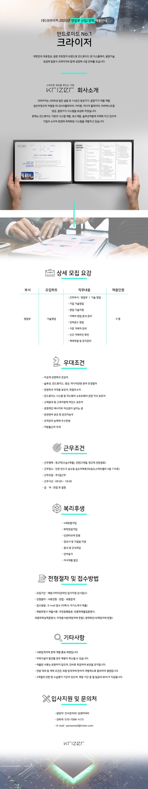 공지 | 크라이저 2020년 영업부 신입/경력 채용 안내