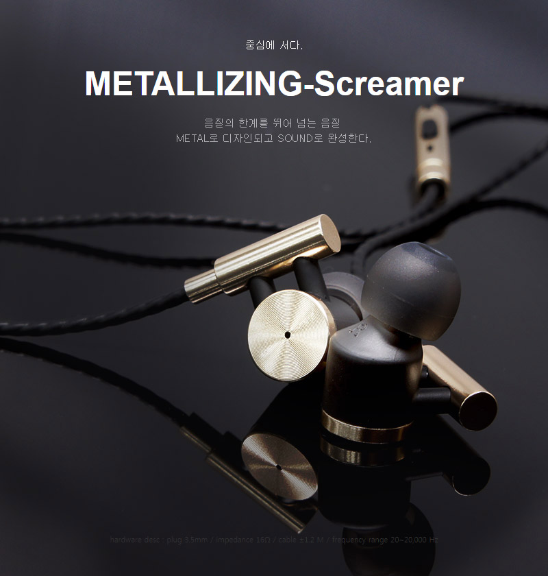 소형 음향기기 | Metallizing-Screamer 페이지 정보 작성자 크라이저 작성일17-03-30 11:16 조회21,752회 댓글0건 이전글 다음글 목록 본문 중심에 서다.METALLIZING-Screamer 음질의 한계를 뛰어 넘는 음질 METAL로 디자인되고 SOUND로 완성한다.hardware desc : plug 3.5mm / impedance 16Ω / cable ±1.2 M / frequency range 20~20,000 Hz 이전글 다음글 목록